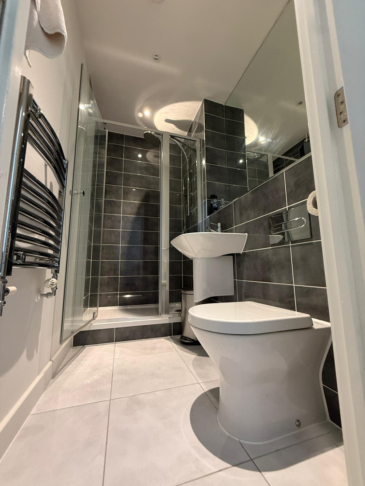 Found on the fifth floor, the apartment features a spacious open-plan living and dining area with a modern fitted kitchen and direct access to a two private balconies. There are two double bedrooms, both with built in wardrobes and the principle bedroom also benefits from an en suite shower room. Additionally there is a family bathroom off the hallway along with a large storage cupboard.